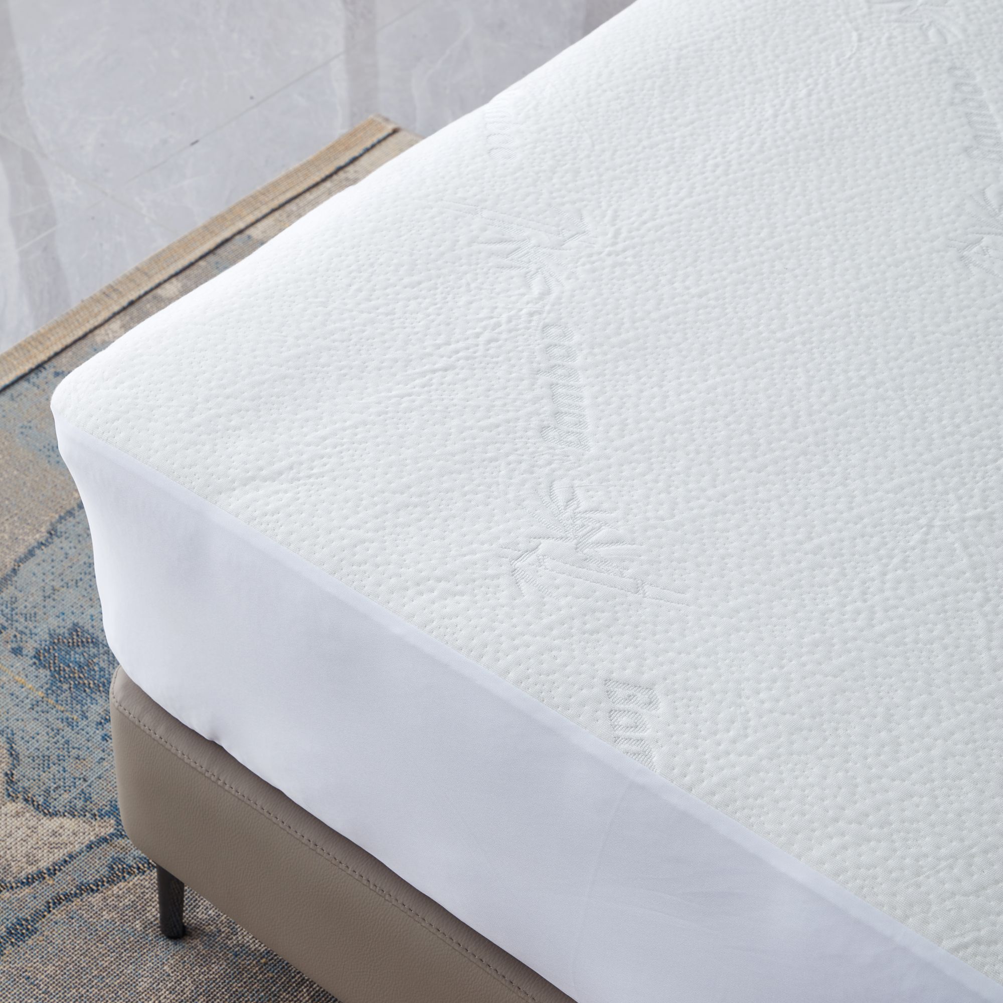 • Prešívaný dizajn: Prešívaná technológia pevne zaisťuje látku a výplň, zabraňuje posúvaniu výplne a zvyšuje odolnosť chrániča matraca.